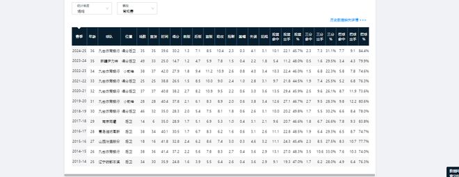 他的生涯最高光时刻是在15-16赛季效力山西队期间,常规赛场均可砍下34.9分10.6篮板10.8助攻。