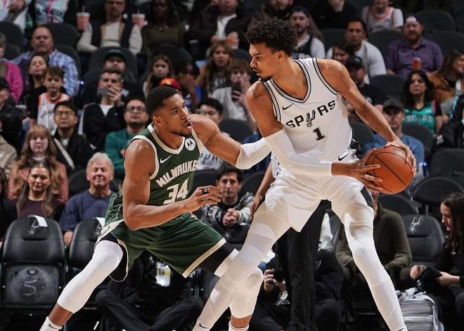 举个例子,马刺可以像雷霆那样,一步一个脚印,本赛季先打入西部前四,休赛期他们可是为数不多兼具首轮筹码+夺冠竞争力的球队。用美媒话说,没人会拒绝联手文班亚马的可能性!如果字母哥来了呢?在此之前,文班亚马给球队铺好路。在詹姆斯逐渐老去后,过去几个赛季,联盟门面始终没有定论,而且每位所谓的超巨,都有短板。伴随着文班亚马的超级崛起,还不到22岁的他,终于该拿到交接棒了,下一个10年,马刺可能又要统治联盟了。