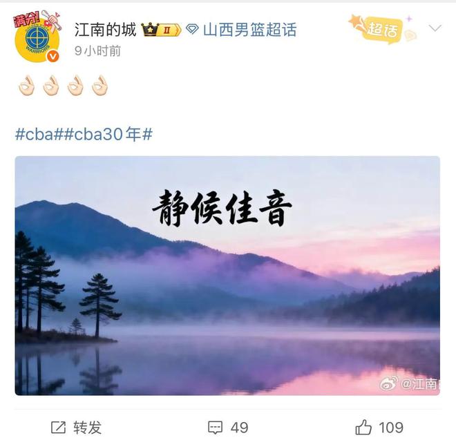近日,山西男篮总经理王建武在接受媒体采访时表示,上赛季山西男篮取得了队史最佳常规赛战绩,并最终夺得季军,追平了队史最佳纪录!虽然目前只有两名外援,但是还有外援在办理手续当中。据媒体人“江南的城”透露,山西男篮确实还有一名超级外援,请大家安心等待!不过并没有透露这位超级外援是谁。
