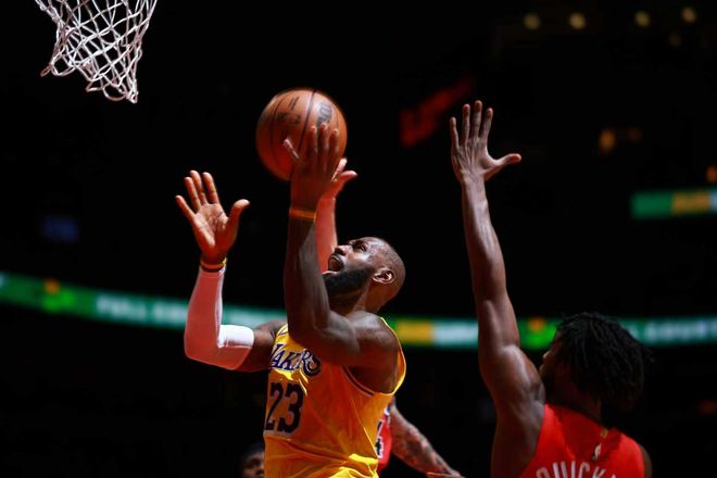 湖人上一场主场108-125输给太阳结束7连胜,猛龙上一场主场121-118险胜开拓者。本场湖人缺少东契奇与斯马特,猛龙缺少阿巴基、巴雷特与珀尔特尔。首节开局,湖人内外开花取得12-6领先优势,里夫斯率队继续扩大20-10领先优势。湖人继续扩大24-13领先优势,猛龙一波13-2攻势追到差3分。湖人继续扩大领先优势,首节比赛结束湖人31-26领先猛龙。首节湖人24中11,其中三分9中5,詹姆斯5中0得到0+2+2与里夫斯8分,猛龙25中11,其中三分7中2。
