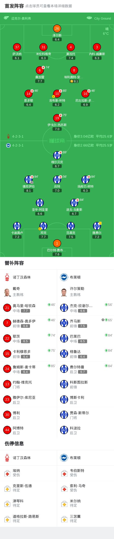 北京时间11月30日,英超联赛第13轮,诺丁汉森林主场迎战布莱顿。上半场补时阶段,德克伊珀为布莱顿打破僵局。随后比赛尾声阶段,莫拉托失误,齐马斯锁定胜局。最终,布莱顿客场2-0完胜诺丁汉森林。