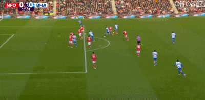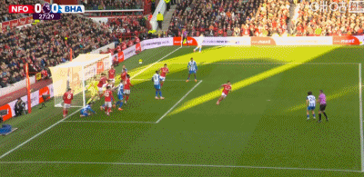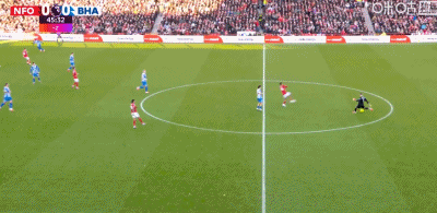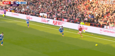第45+1分钟,德克伊珀低射破门,布莱顿1-0森林